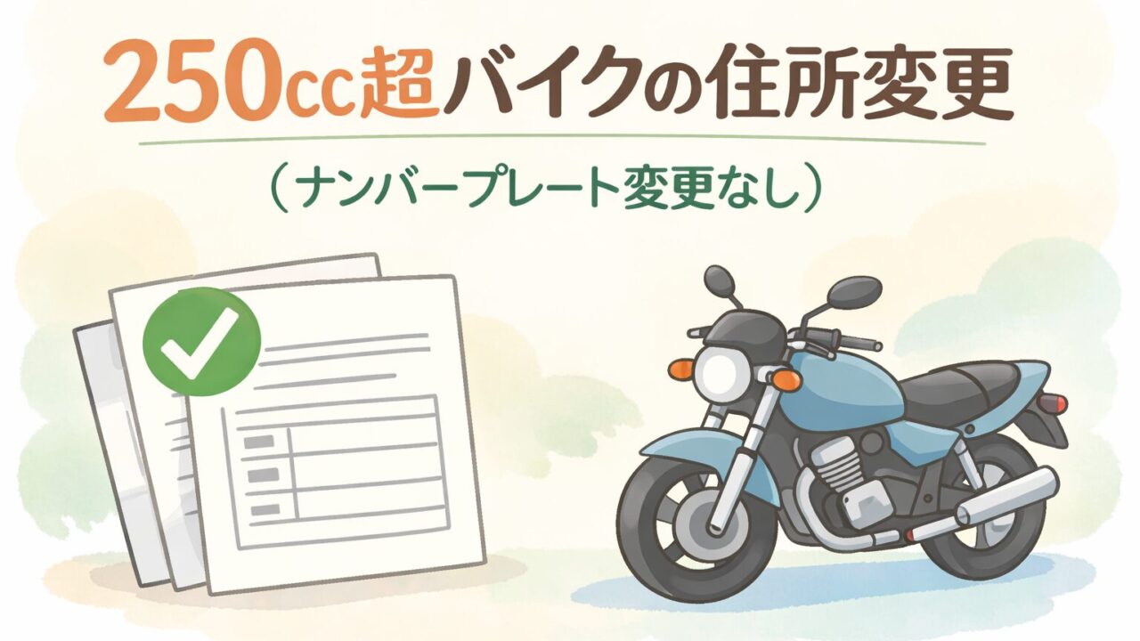 この記事では、250ccを超えるすべてのバイク(400cc・大型バイクを含む)の住所変更手続き(ナンバープレート変更なし)について解説しています。