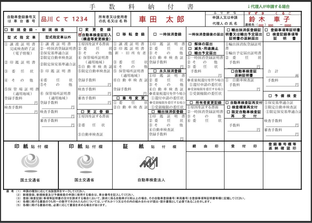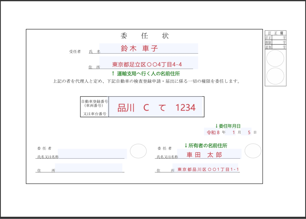 • 代理人が申請する場合でも、所有者の委任状はOCRシートの下部、所有者氏名・住所に記入してあれば、委任状は不要です。