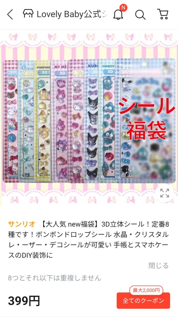 Qoo10で売られてるボンボンドロップシールはキャラクターものが豊富でした。