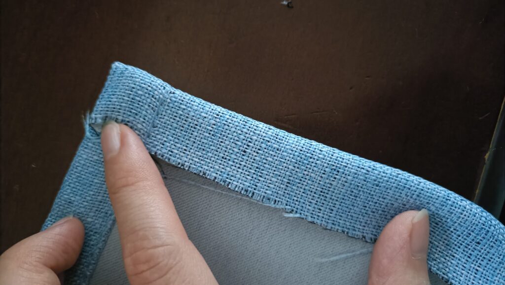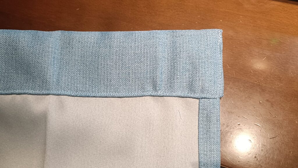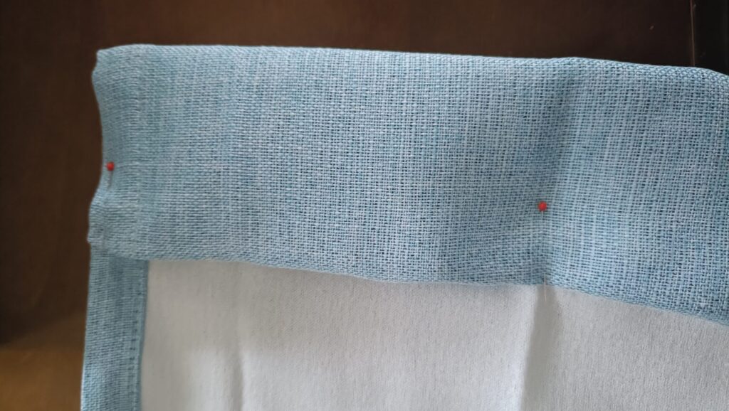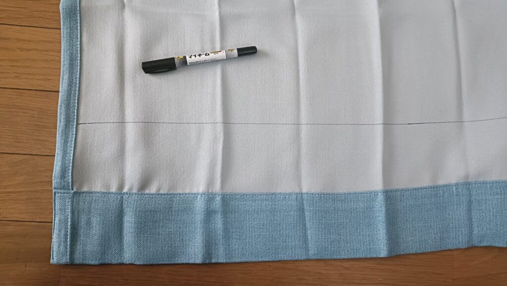 元のカーテンの折り目の部分を折ってから重しで折り目を付けました↓