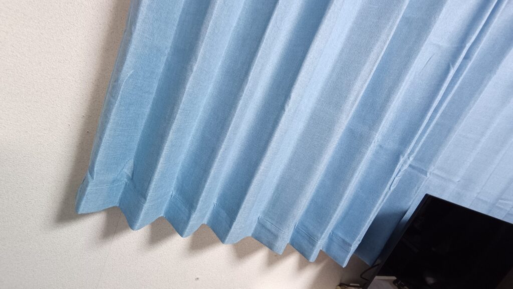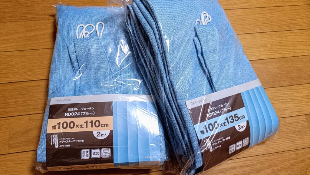 と、アウトレット品のブルーのカーテンを買うことに決めました。