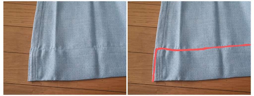 丈詰め前のカーテン↓赤線のように縫っていきます↓