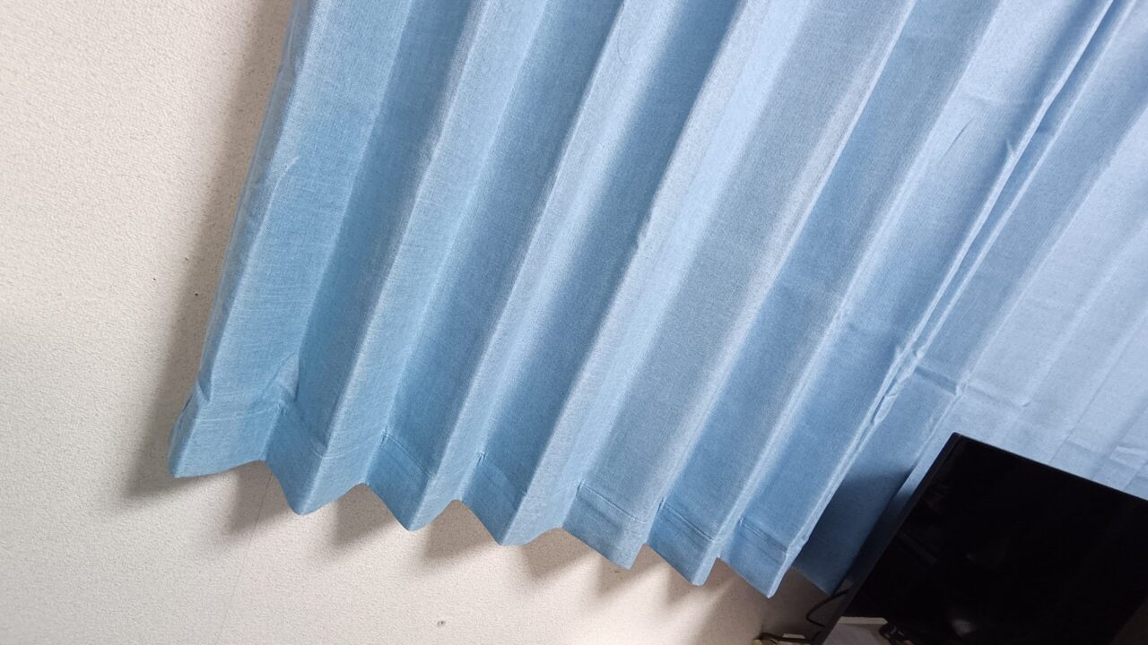 と、アウトレット品のブルーのカーテンを買うことに決めました。