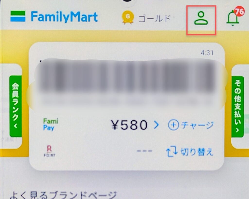 ※ファミペイアプリはセキュリティの関係でスクリーンショットができないため、この記事では別のスマホで画面を撮影した写真を使用しています。