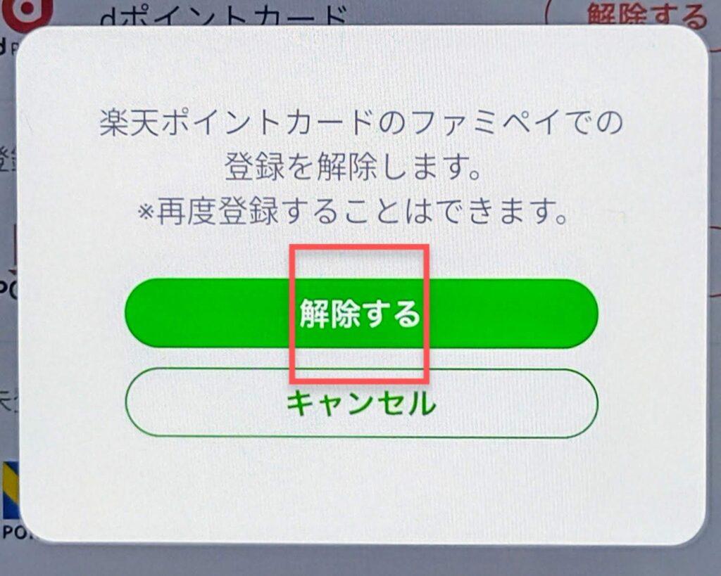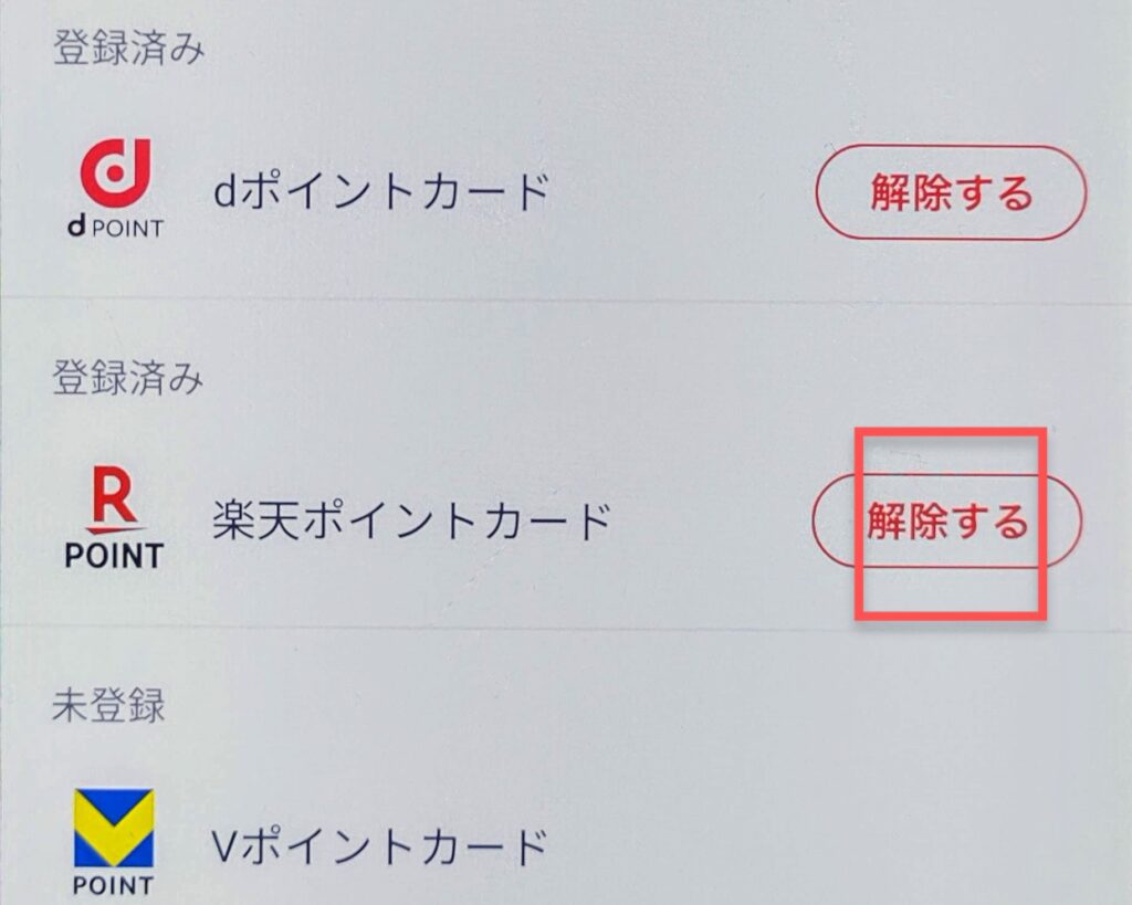 ⑥楽天ポイントカードの「解除する」をタップ