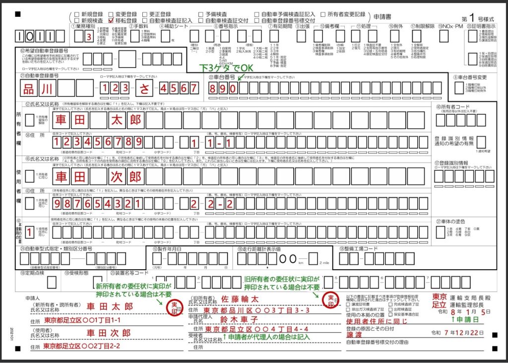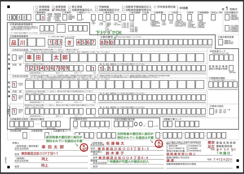 • 移転登録申請書(OCRシート1号様式、運輸支局で配布)