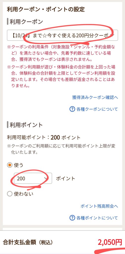 ※利用できるクーポンやポイントがない場合は選択画面は出てきません
