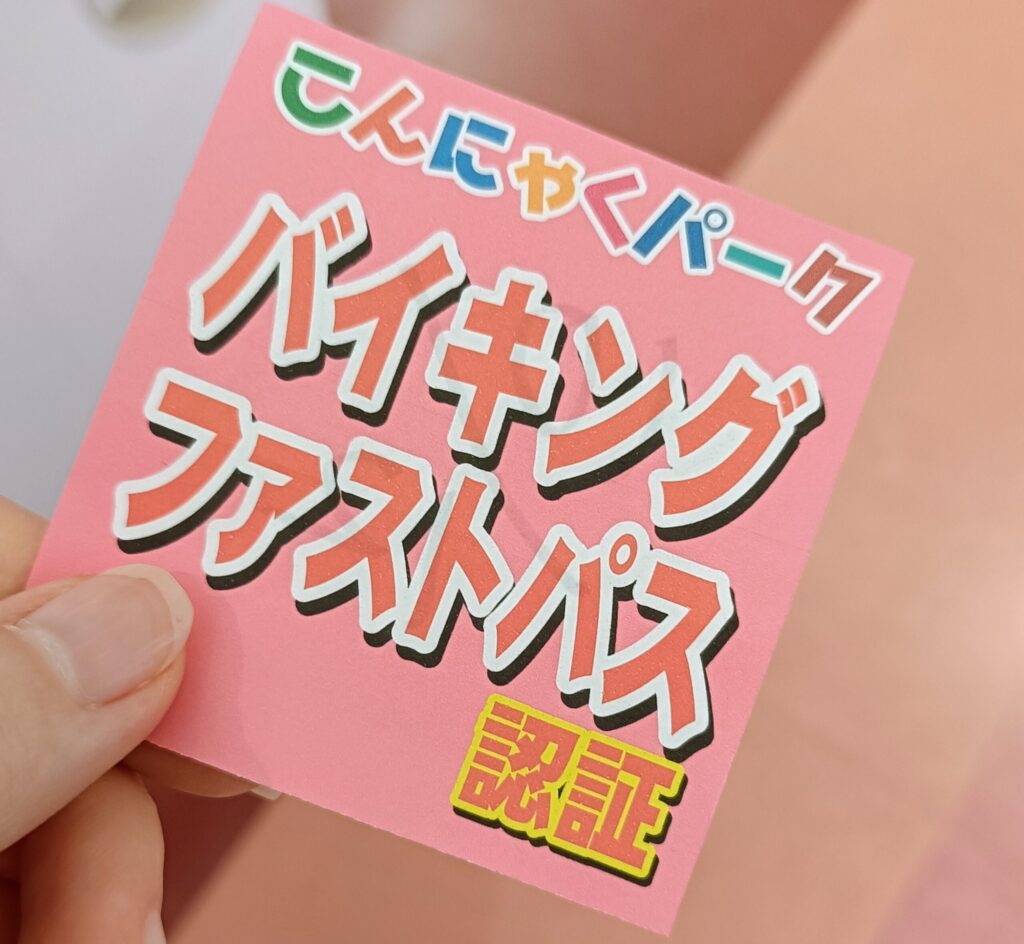 受付で、じゃらんで予約したことを伝え、そのあとお支払いをすると、人数分のこんにゃくのプレゼント、バイキングのファストパス、富岡製糸場の入場チケットが渡されます。