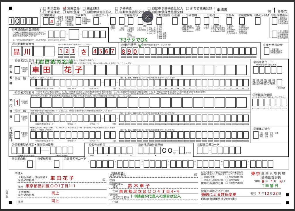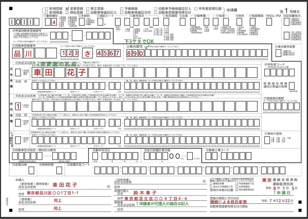 - 所有者欄の氏名に変更後の名前を記入