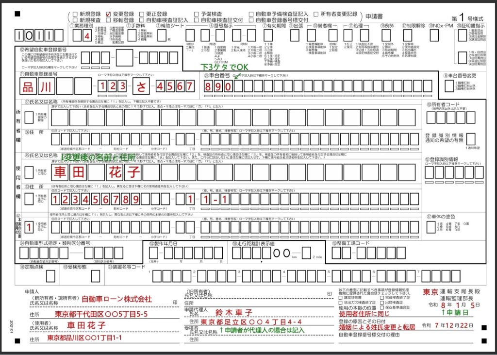 - 変更登録申請書(OCRシート1号様式、運輸支局で配布)