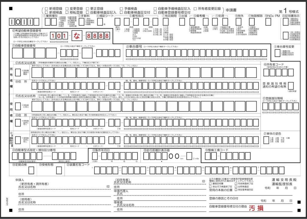 - 申請する車の変更前のナンバーを「自動車登録番号」に記入