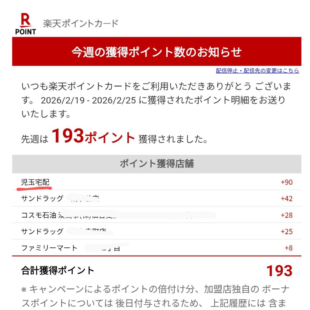 「今週の獲得ポイント数のお知らせ」というメールが届きました。