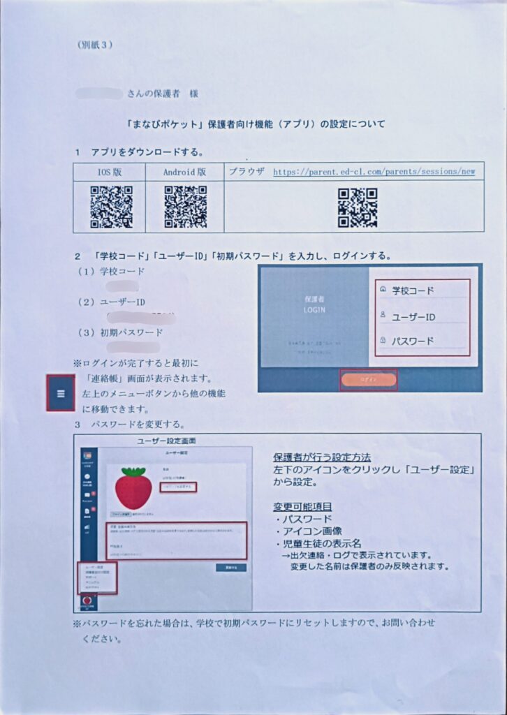 これらは、4月に学校から配布されたA4サイズのお便りに記載されています。