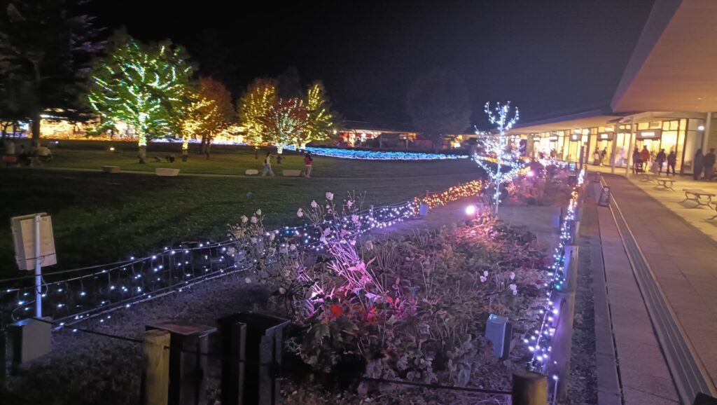プリンスショッピングプラザ内で17:00~22:00の時間イルミネーションをやっています。