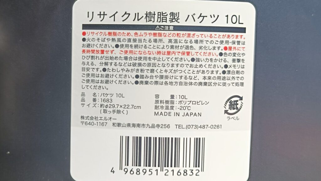 100均だし、小さいバケツしかないだろうなぁと思い行ってみると10L入るバケツを発見!